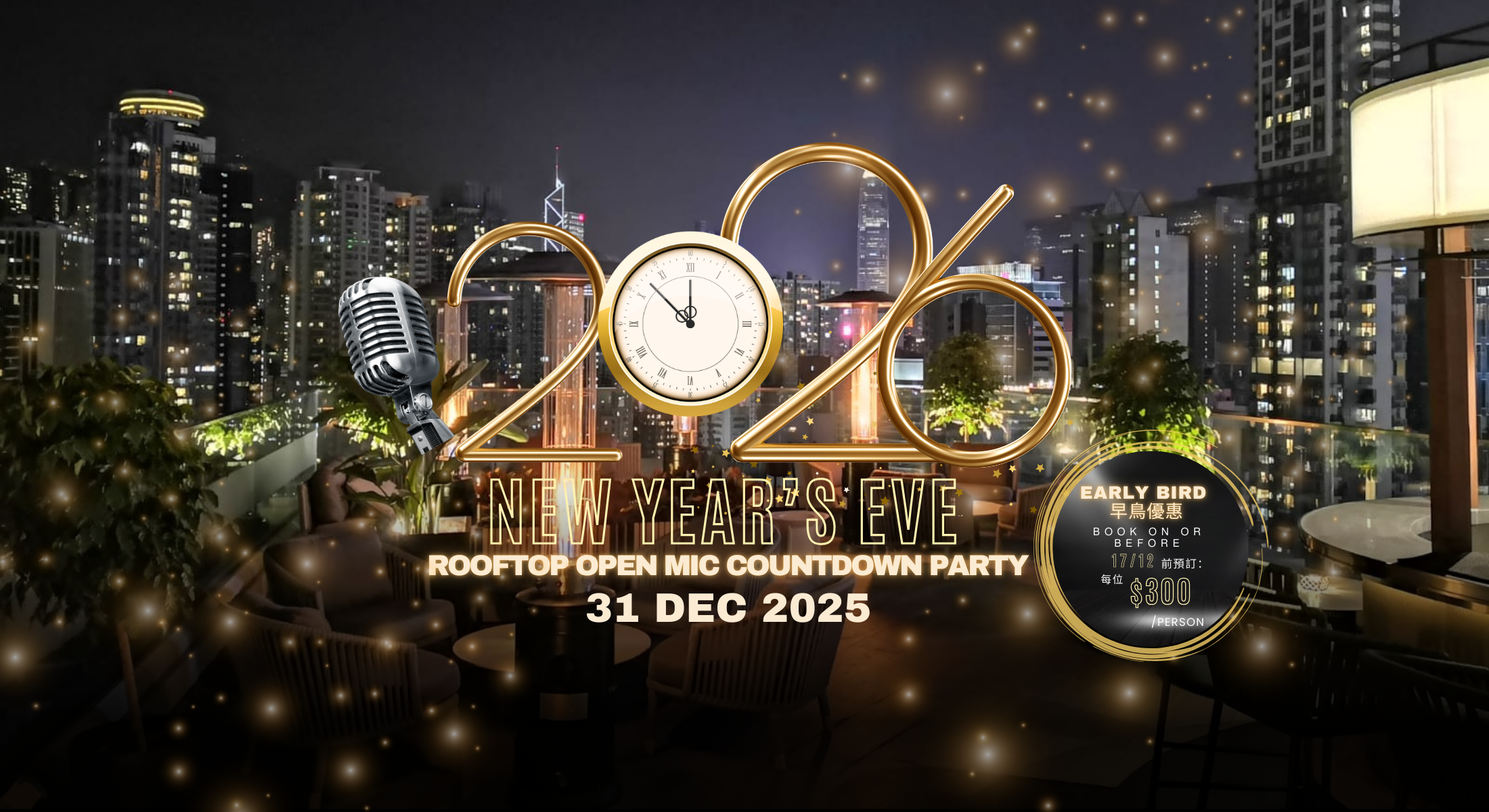 The Crown 将于31/12 举行天台除夕Open Mic倒数派对!特设多款饮品,现场更有乐队同你一齐唱位狂欢迎接2026!