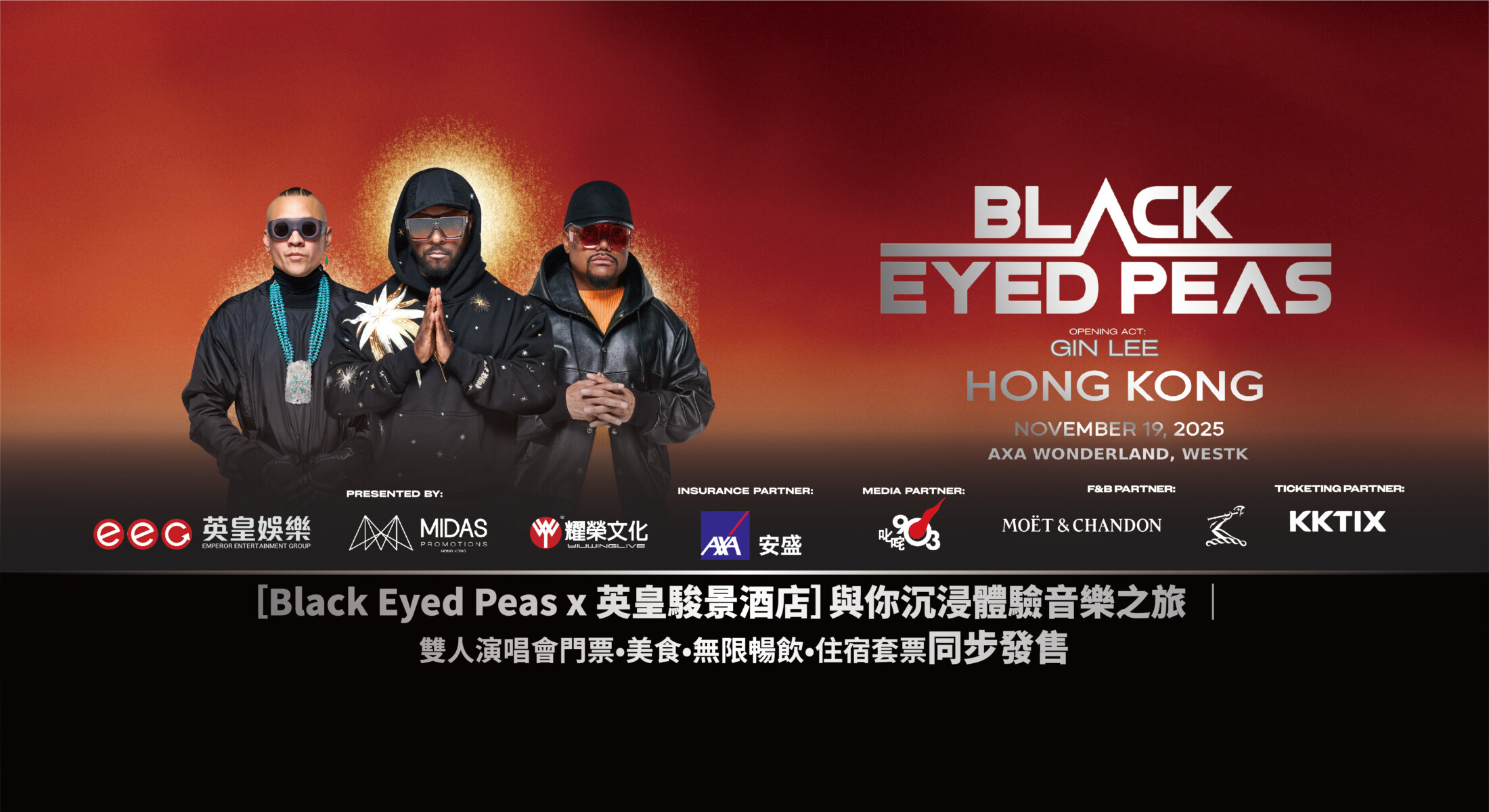 【Black Eyed Peas x 英皇骏景酒店】与你沉浸体验音乐之旅 | 双人演唱会门票•美食•无限畅饮•住宿套票同步发售